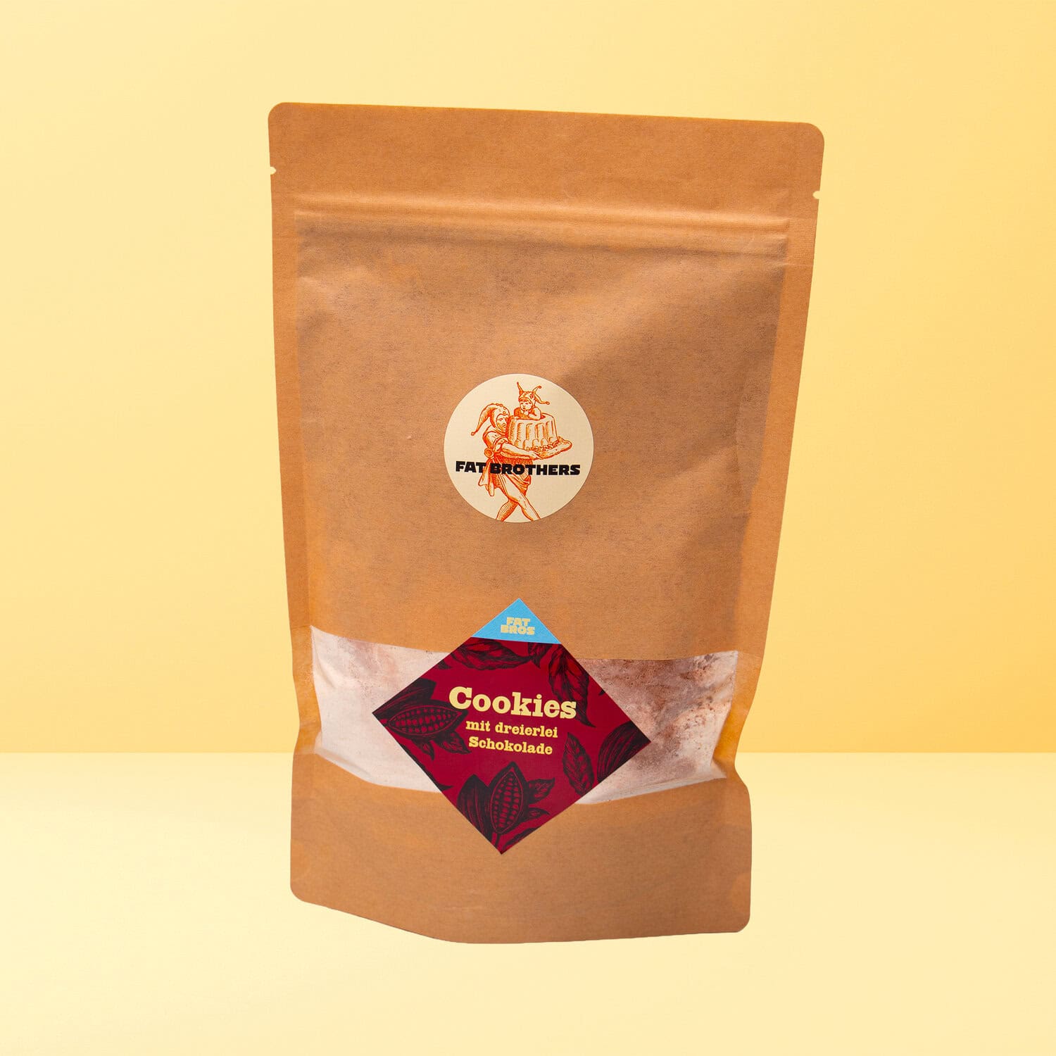 Zutaten: Weizenmehl, Zucker, Milchschokolade, dunkle Schokolade (mind. 60 % Kakao, Kakaomasse und Kakaobutter, Zucker, Sojalecithin, Vanilleextrakt), Milchschokolade (Kakaomasse und Kakaobutter, Zucker, Milchpulver, Sojalecithin, Vanilleextrakt), weiße Schokolade (Zucker, Kakaobutter, Milchpulver, Sojalecithin, Vanilleextrakt), Kakao, Salz, BackpulverNährwerte in 100 g Produkt (g): Fette 7,6, davon gesättigte Fettsäuren 4,3, Kohlenhydrate 75, davon Zucker 49, Proteine 6,3, Salz 1,2. Energiewert (kJ/kcal) 1663/396