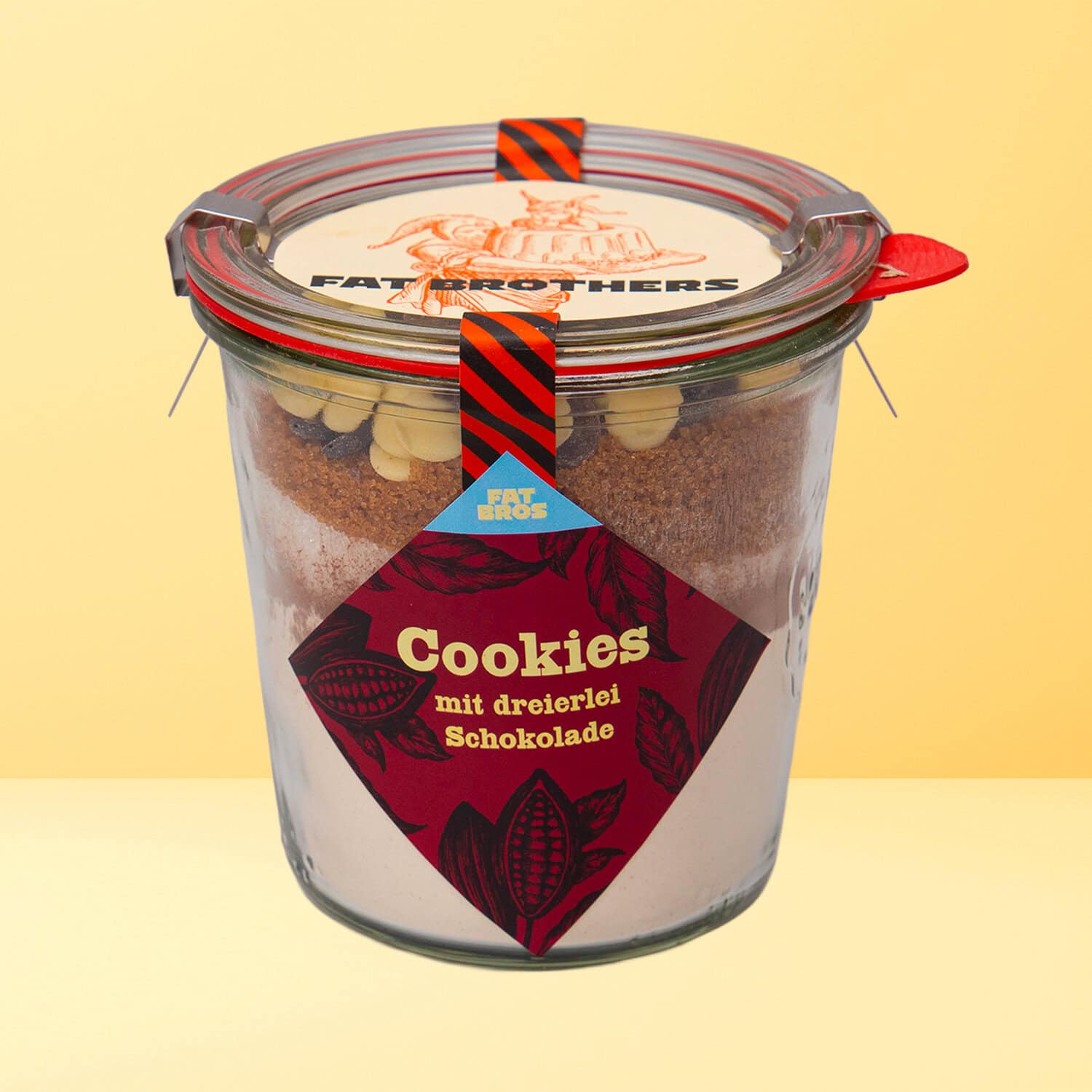 Zutaten: Weizenmehl, Zucker, Milchschokolade, dunkle Schokolade (mind. 60 % Kakao, Kakaomasse und Kakaobutter, Zucker, Sojalecithin, Vanilleextrakt), Milchschokolade (Kakaomasse und Kakaobutter, Zucker, Milchpulver, Sojalecithin, Vanilleextrakt), weiße Schokolade (Zucker, Kakaobutter, Milchpulver, Sojalecithin, Vanilleextrakt), Kakao, Salz, BackpulverNährwerte in 100 g Produkt (g): Fette 7,6, davon gesättigte Fettsäuren 4,3, Kohlenhydrate 75, davon Zucker 49, Proteine 6,3, Salz 1,2. Energiewert (kJ/kcal) 1663/396