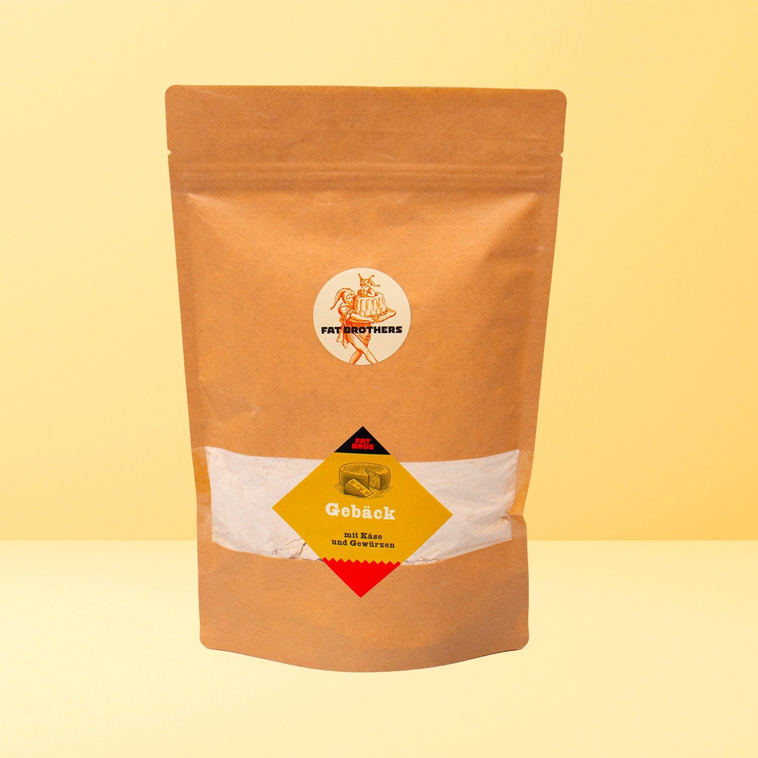 Zutaten: Weizenmehl, getrockneter reifer Cheddar (Käse, Molke), Zucker, Salz, Trockenhefe, Gewürzmischung (Kreuzkümmel, Fenchel, Koriander, Anis, Schwarzkümmel).