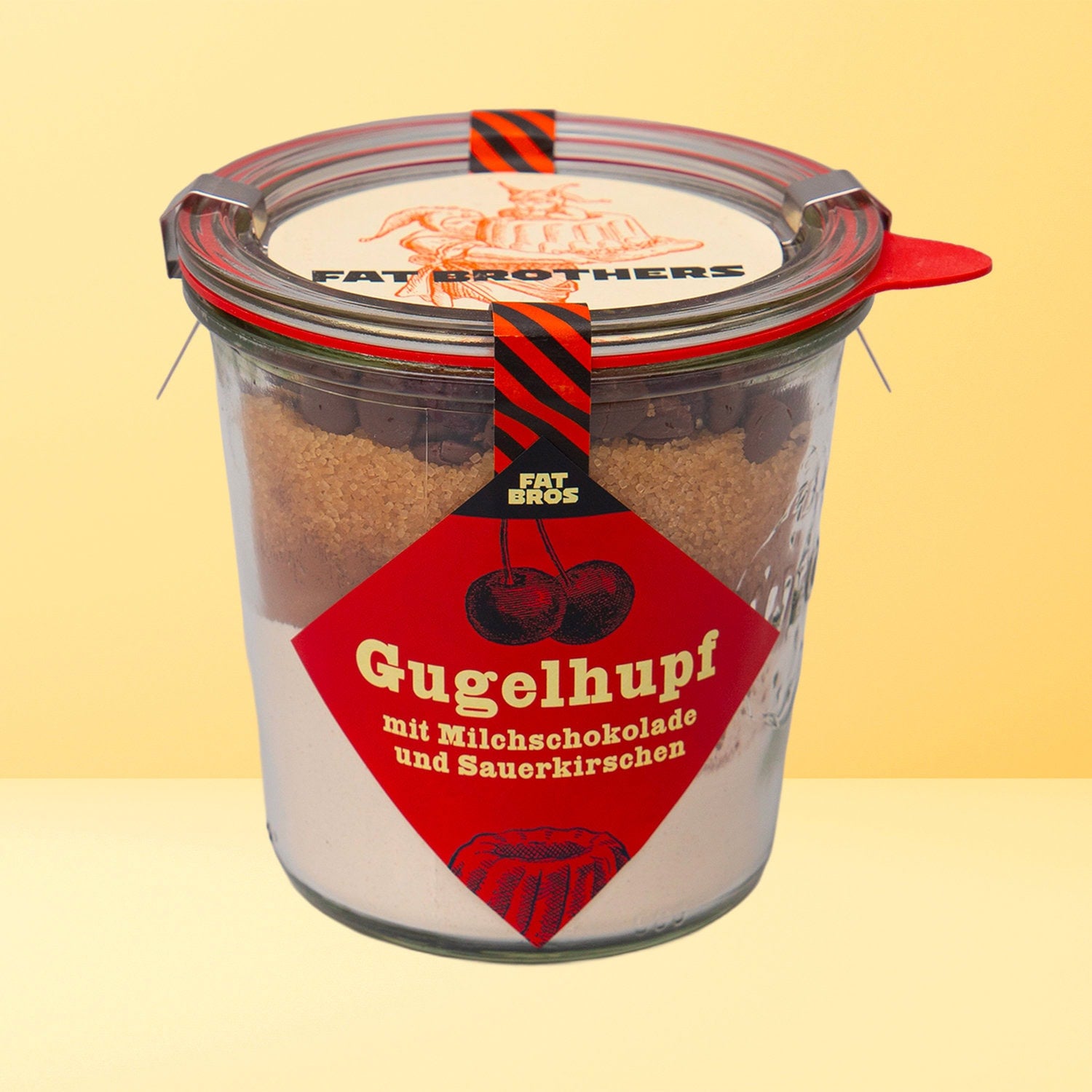Gugelhupf mit Milchschokolade und Saürkirschen Backmischung im Weck-Glas