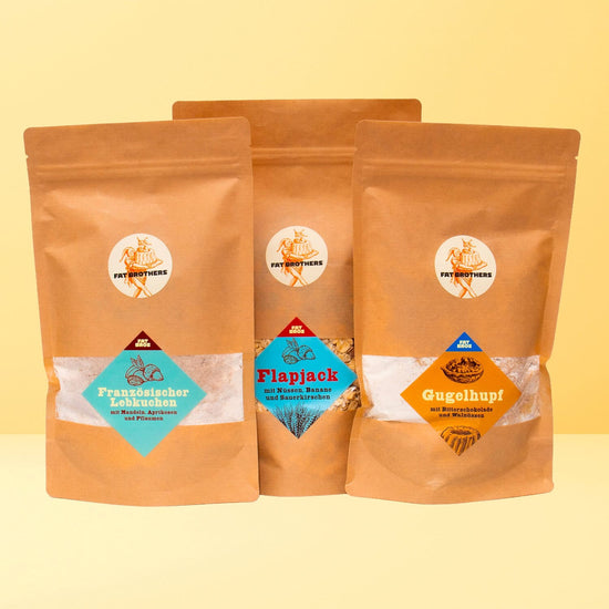 Nuß Leckereien für die Schule Lebkuchen Gugelhupf und Müsliriegel Backmischungen