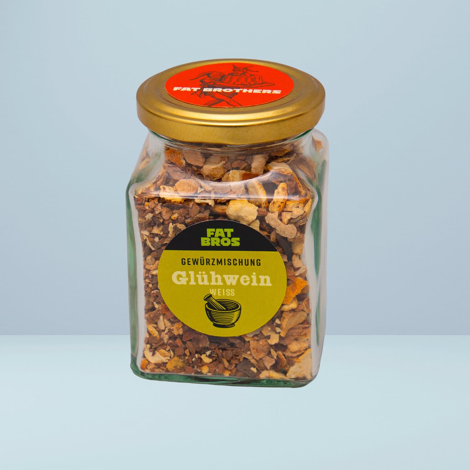 Raffinierte Gewürzmischung für weißen Glühwein und heiße Getränke im großen Glas