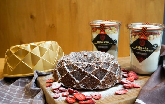 Gugelhupf mit weißer Schokolade und Erdbeeren - Backmischung