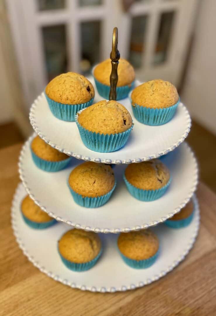 Zubereitung : 4 Eier, 50 ml Milch und 150 ml Öl (geschmacksneutral) mit einem Schneebesen gut verrühren, die Backmischung dazugeben und nochmals gut verrühren. 12 Muffinformen mit Butter einfetten und mit Mehl ausstreuen, die Mischung in 3/4 der Formen füllen. Bei 170 °C ca. 20 Minuten backen.