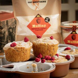 Glutenfreie Muffins mit weißer Schokolade und Himbeeren – Backmischung